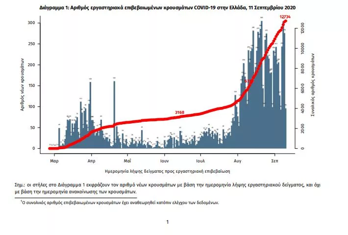 Τα στοιχεία που παρουσιάζονται αφορούν περιστατικά από την επιδημιολογική επιτήρηση της νόσου από το νέο κορωνοϊό (COVID19), με βάση τα δεδομένα που έχουν δηλωθεί στον ΕΟΔΥ και καταγραφεί μέχρι τις 11 Σεπτεμβρίου 2020 (ώρα 15:00).