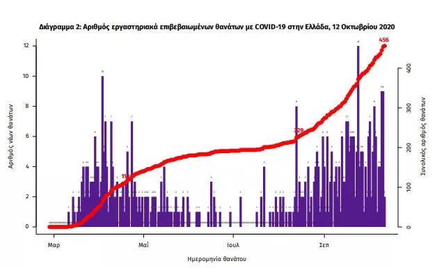 Οι νέοι θάνατοι ασθενών με COVID-19 είναι 7, ενώ από την έναρξη της επιδημίας έχουν καταγραφεί συνολικά 456 θάνατοι.Η διάμεση ηλικία των ασθενών που απεβίωσαν είναι 79 έτη. Ο αριθμός των ασθενών που νοσηλεύονται διασωληνωμένοι είναι 91 (72.5% άνδρες).