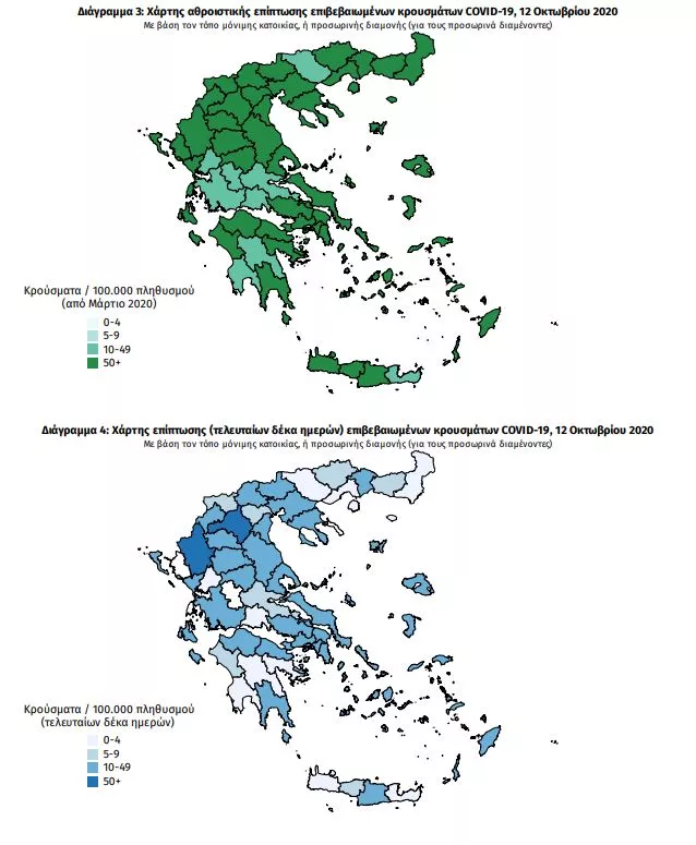 Από το σύνολο των 22652 κρουσμάτων, 3315 (14.6%) θεωρούνται σχετιζόμενα με ταξίδι από το εξωτερικό, 9218 (40.7%) είναι σχετιζόμενα με ήδη γνωστό κρούσμα και τα υπόλοιπα δεν σχετίζονται ούτε με ταξίδι ούτε με άλλο γνωστό κρούσμα ή είναι ακόμα υπό διερεύνηση.