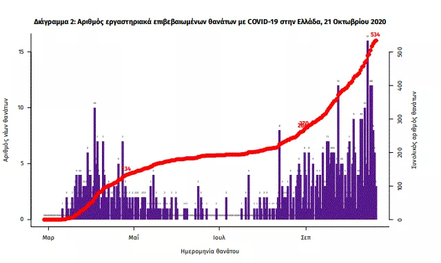 Οι νέοι θάνατοι ασθενών με COVID-19 είναι 6, ενώ από την έναρξη της επιδημίας έχουν καταγραφεί συνολικά 534 θάνατοι.Η διάμεση ηλικία των ασθενών που απεβίωσαν είναι 79 έτη. Ο αριθμός των