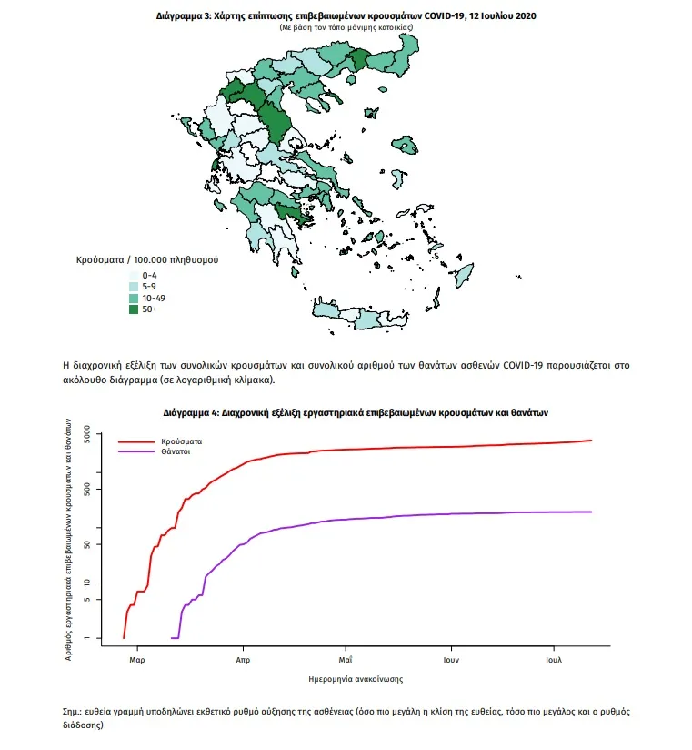 Τα στοιχεία που παρουσιάζονται αφορούν περιστατικά από την επιδημιολογική επιτήρηση της νόσου από το νέο κορωνοϊό (COVID19), με βάση τα δεδομένα που έχουν δηλωθεί στον ΕΟΔΥ και καταγραφεί μέχρι τις 12 Ιουλίου 2020 (ώρα 15:00).