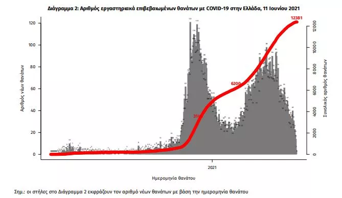 Οι νέοι θάνατοι ασθενών με COVID-19 είναι 11, ενώ από την έναρξη της επιδημίας έχουν καταγραφεί συνολικά 12.381 θάνατοι. Το 95.2% είχε υποκείμενο νόσημα ή/και ηλικία 70 ετών και άνω.