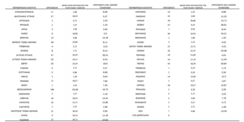 Τα κρούσματα στην Αττική επιμερίζονται ως ακολούθως, κατά την ημερήσια επιδημιολογική έκθεση: