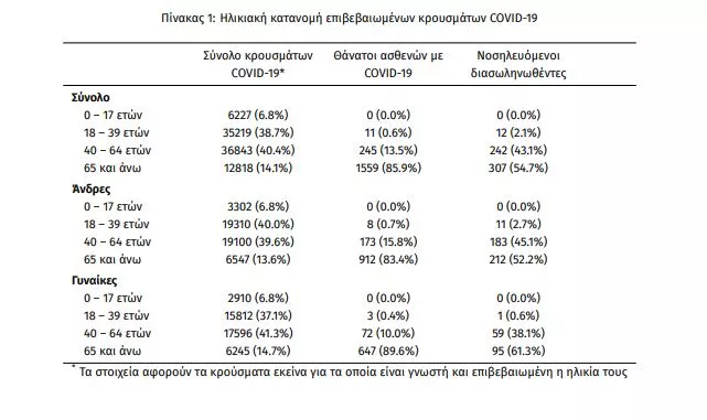 Τέλος, έχουμε 101 ακόμα καταγεγραμμένους θανάτους και 1815 θανάτους συνολικά στη χώρα. 721 (39.7%) γυναίκες και οι υπόλοιποι άνδρες. Η διάμεση ηλικία των θανόντων συμπολιτών μας ήταν τα 80 έτη και το 97.1% είχε κάποιο υποκείμενο νόσημα ή/και ηλικία 70 ετών και άνω.