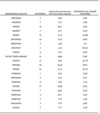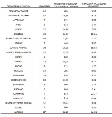 Σε ό,τι αφορά τα κρούσματα, αυτά κατανέμονται ως εξής:
