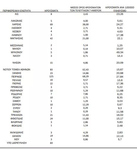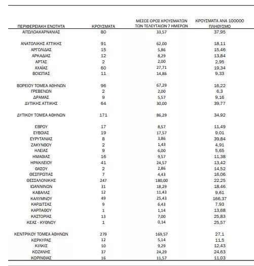 Αναλυτικότερα τα κρούσματα στις περιφερειακές ενότητες που ανήκουν στην Αττική: