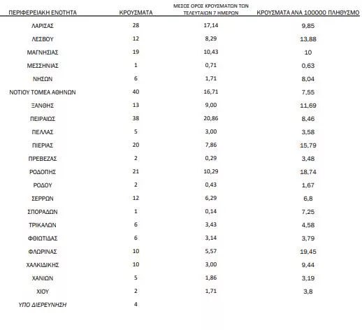16 κρούσματα στην ΠΕ Βοιωτίας