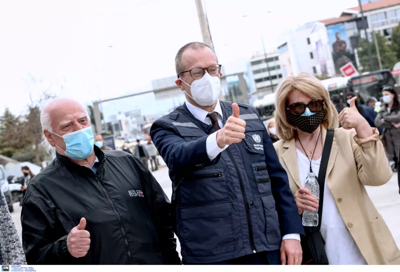 Το Mega Εμβολιαστικό Κέντρο «Προμηθέας» στο Μαρούσι, επισκέφθηκε ο περιφερειακός διευθυντής Ευρώπης του Παγκόσμιου Οργανισμού Υγείας Hans Kluge, μαζί με τον υπουργό Υγείας Βασίλη Κικίλια και τον γενικό γραμματέα Πρωτοβάθμιας Φροντίδας Υγείας, Μάριο Θεμιστοκλέους.
