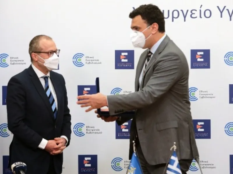 Υπεγράφη σήμερα στο υπουργείο Υγείας η συμφωνία αναφορικά με την έναρξη λειτουργίας του γραφείου του Παγκόσμιου Οργανισμού Υγείας (ΠΟΥ) στην Αθήνα για την Ποιότητα της Φροντίδας και την Ασφάλεια των Ασθενών, από τον υπουργό Υγείας, Βασίλη Κικίλια και τον περιφερειακό διευθυντή του ΠΟΥ στην Ευρώπη, Dr Hans Kluge. Λίγο νωρίτερα, είχε πραγματοποιηθεί κατ' ιδίαν συνάντηση των κ.κ. Κικίλια και Kluge στο γραφείο του υπουργού Υγείας.