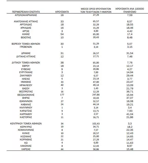 21 κρούσματα στην Π.Ε. Κορινθίας