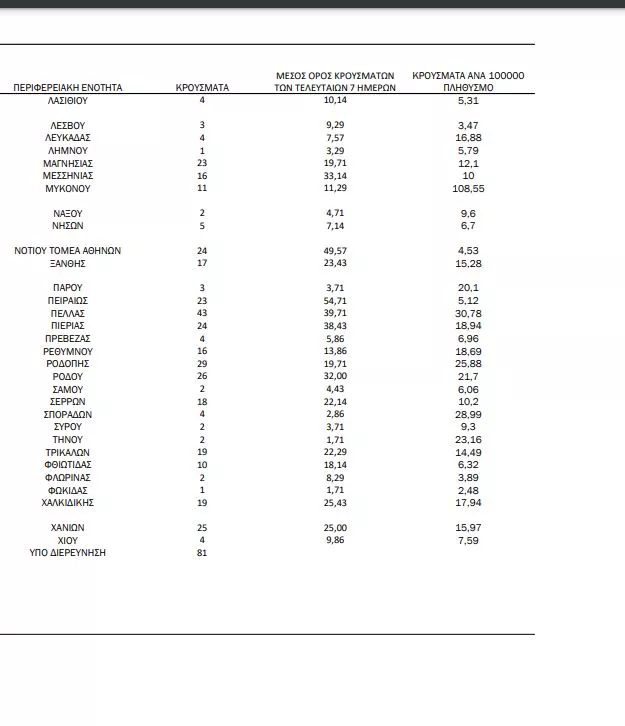 54 κρούσματα στην Π.Ε. Αχαΐας