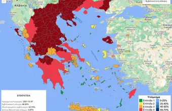 Ακόμη μία περιφέρεια της χώρας μπαίνει αυτή την εβδομάδα στο βαθύ κόκκινο (επίπεδο 5) του Επιδημιολογικού Χάρτη, ενώ μία περιφέρεια περνά από το κίτρινο (επίπεδο 2) στο πορτοκαλί (επίπεδο