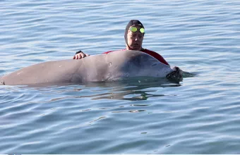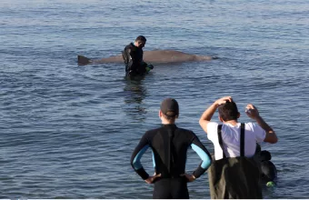 Η νεαρή ραμφοφάλαινα (Ziphius cavirostris), η οποία είχε εμφανιστεί το προηγούμενο Σάββατο 29 Ιανουαρίου στα αβαθή του όρμου Σελήνια στη