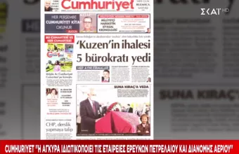 Η τουρκική εφημερίδα έχει στο πρωτοσέλιδό της μια είδηση πως η τουρκική κυβέρνηση ετοιμάζει να ιδιωτικοποιήσει την εταιρία ερευνών πετρελαίου αλλά και την εταιρία διανομής φυσικού αερίου.