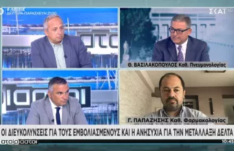 Να εξασφαλιστεί ότι και οι εργαζόμενοι στους αμιγείς χώρους θα είναι εμβολιασμένοι, ζήτησε ο καθηγητής Πνευμονολογίας Θεόδωρος Βασιλακόπουλος μιλώντας στην τηλεόραση του ΣΚΑΪ και την εκπομπή «Αταίριαστοι».