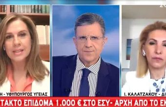 Για το βοήθημα στους ανθρώπους του Εθνικού Συστήματος Υγείας μίλησε η Υφυπουργός Υγείας Ζωή Ράπτη στον ΣΚΑΪ και τον Γιώργο Αυτιά.