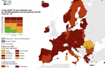 Χάρτης ECDC: Στο «βαθύ κόκκινο» οι περισσότερες χώρες της Ευρώπης, μεταξύ των οποίων και η Ελλάδα