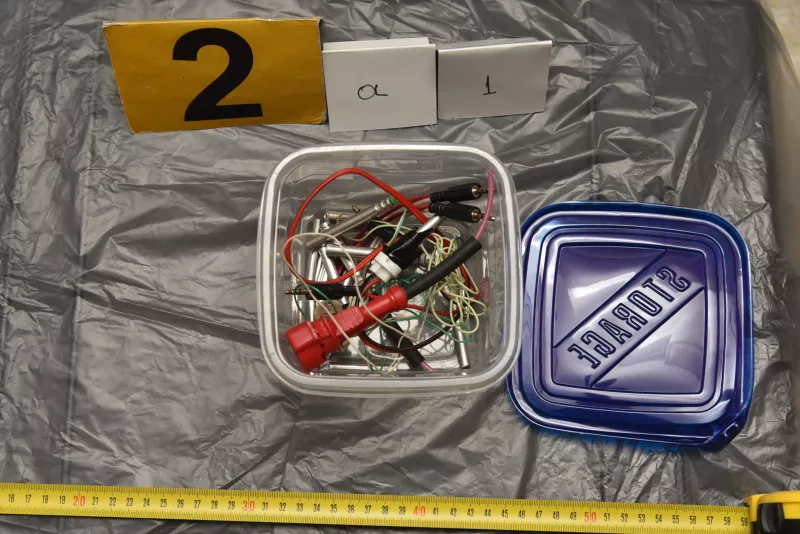 (14) κοινοί πυροκροτητές, (2) ηλεκτρικοί πυροκροτητές, (2) πυροκροτητές Nonel, (1) κοινός πυροκροτητής που έχει μετατραπεί σε ηλεκτρικό, πλήθος φυσιγγίων πολεμικού τυφεκίου ( Kalashnikov ).