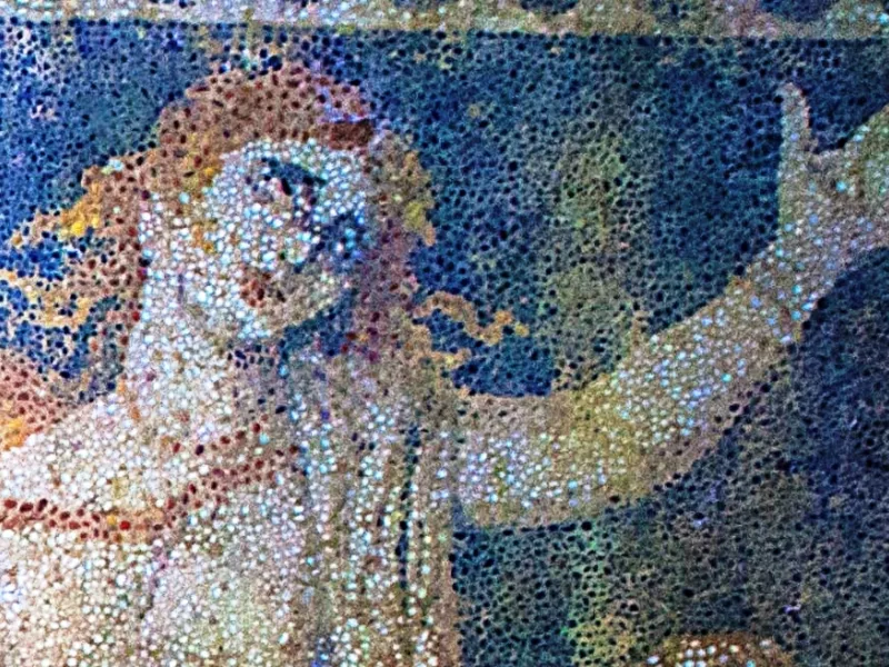 Να σημειωθεί ότι πρόκειται για την πρώτη φορά που βρίσκεται τέτοια αναπαράσταση σε ψηφιδωτό σε τάφο. Οι διαστάσεις του ψηφιδωτού είναι 4,5 επί 3 μέτρα.