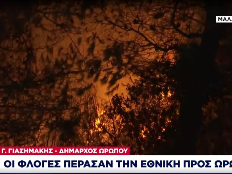 Προληπτική εντολή εκκένωσης της πυροσβεστικής, έχει δοθεί, όπως ενημέρωσε μιλώντας στον ΣΚΑΙ ο Δήμαρχος Ωρωπού Γιώργος Γιασημάκης, καθώς το πύρινο μέτωπο πέρασε την Εθνική Οδό.