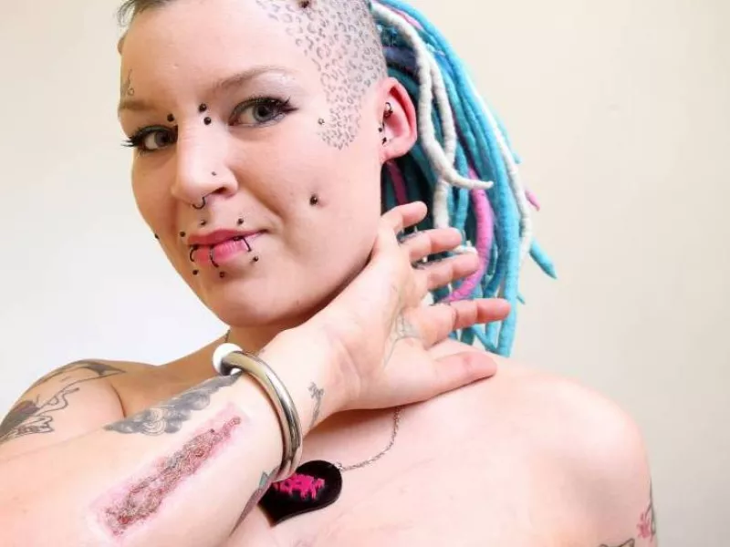 Μη θέλοντας πια να φέρει το όνομά του σε τατουάζ στο χέρι της -και προφανώς απρόθυμη να κλείσει ραντεβού για να το αφαιρέσει με λέιζερ- η νεαρή έκοψε από το χέρι της τη φράση “Chopper's B****” (η σκύλα, δηλαδή η “κοπέλα” του “Τσόπερ” όπως είναι το προσωνύμιό του πρώην φίλου της) χρησιμοποιώντας ένα νυστέρι, και κατόπιν τού το ταχυδρόμησε σε συσκευασία δώρου(!)