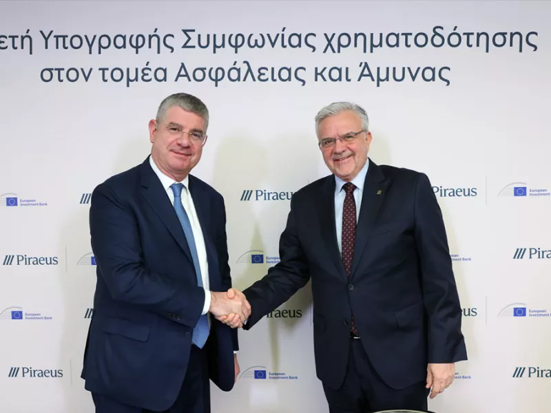 Συμφωνία για την παροχή χρηματοδότησης έως 100 εκατ. ευρώ προς μικρές και μεσαίες εταιρείες του τομέα άμυνας υπέγραψαν την Παρασκευή η Ευρωπαϊκή Τράπεζα Επενδύσεων και η Πειραιώς. Πρόκειται για την πρώτη συναλλαγή της ΕΤΕπ στην Ελλάδα που είναι αποκλειστικά στοχευμένη στη στήριξη αμυντικών επιχειρήσεων.