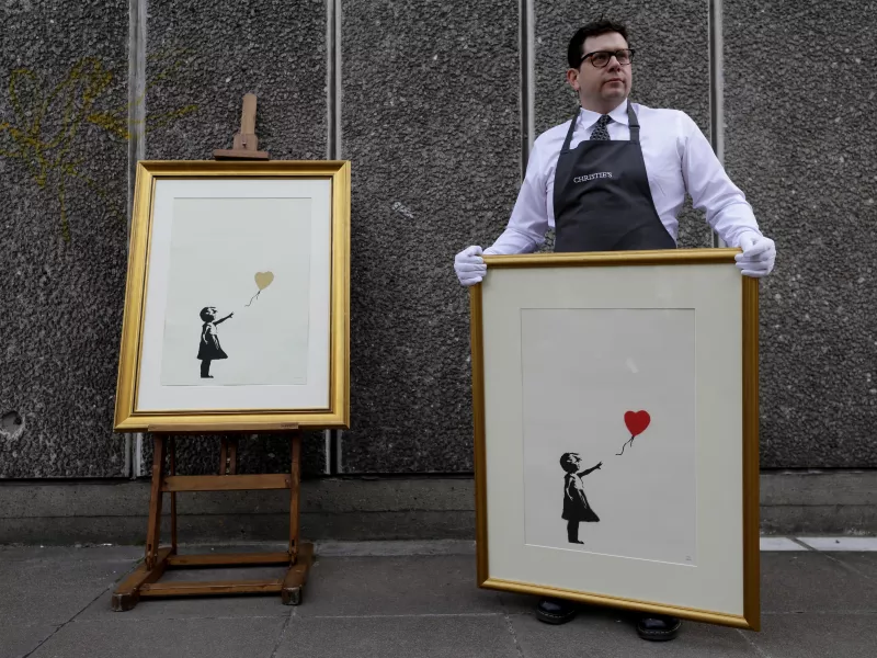 «Το Κορίτσι με το Μπαλόνι», που μετονομάσθηκε σε «Η Αγάπη βρίσκεται στα Σκουπίδια», εκτιμάται στα 4 έως 6 εκατ. στερλίνες, αναφέρεται στην ανακοίνωση του οίκου.