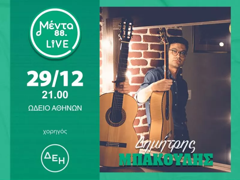 Τη Δευτέρα 29 Δεκεμβρίου στις 21.00, στην καρδιά της πόλης, στο Ωδείο Αθηνών, υποδεχόμαστε τον Δημήτρη Μπάκουλη, έναν από τους πιο ξεχωριστούς και διαδραστικούς τραγουδοποιούς της νέας γενιάς. Μάλιστα, τα τραγούδια «Τα Κβάντα» και «Κλώνος» λειτούργησαν ως γέφυρες για να ταξιδέψουμε μαζικά στον κόσμο του.