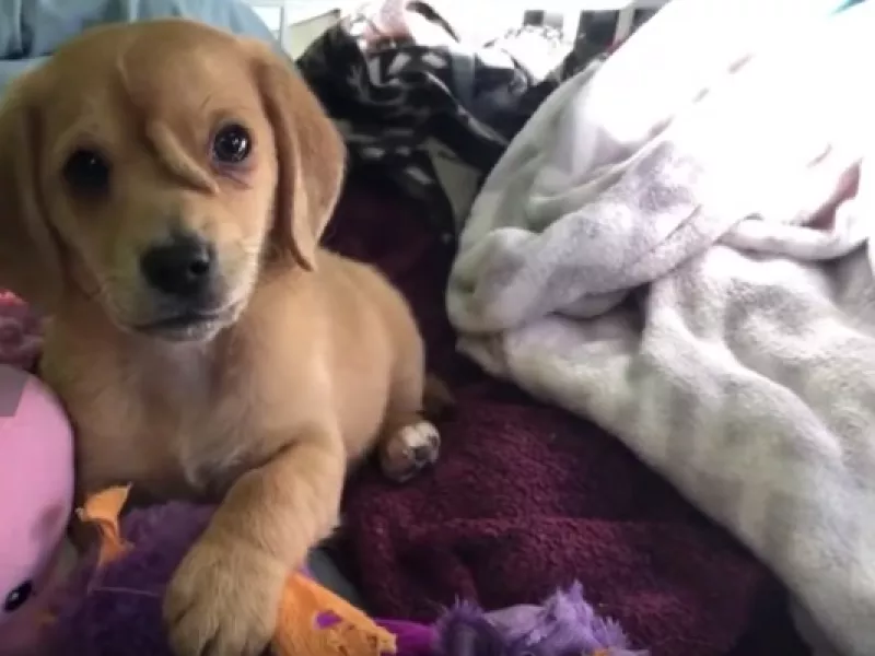 Ένα κουτάβι με μια ουρά που μεγαλώνει στο μέτωπό του έχει γίνει διαδικτυακή διασημότητα όταν μια μη κερδοσκοπική ομάδα που το ανακάλυψε δημοσίευσε αυτό το βίντεο στο ίντερνετ.