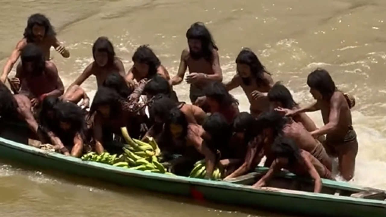Στην ερευνητική ομάδα υπήρχε και ένας ντόπιος με γνώσεις από διαλέκτους φυλών του Αμαζονίου και κατάφερε μία μικρή συννενόηση. Οι πρωτόγονοι ζήτησαν μπανάνες, αλλά και τα ρούχα ενός ερευνητή. Πήραν τις μπανάνες και ζήτησαν περισσότερες, ενώ έλαβαν και ως «δώρο» ένα παντελόνι και ένα φανελάκι. Όλα αυτά με ένα κανό το οποίο έσπρωξε η ερευνητική ομάδα προς την άλλη όχθη.