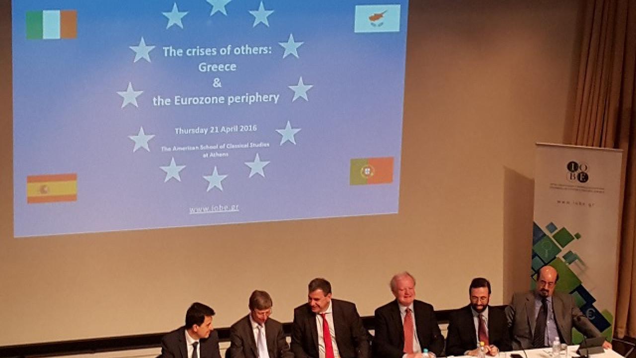 Στην εκδήλωση του ΙΟΒΕ με τίτλο "Οι κρίσεις των άλλων: Η Ελλάδα και η περιφέρεια της Ευρωζώνης", που πραγματοποιήθηκε στο αμφιθέατρο της Αμερικανικής Σχολής Κλασικών Σπουδών στην Αθήνα, μίλησαν πέραν του Matthias Mors άλλοι διακεκριμένοι επιστήμονες - οικονομολόγοι, για την Ιρλανδία (Donal Donovan), την Πορτογαλία (Ricardo Reis), την Ισπανία (Rafael Domenech) και την Κύπρο (Μιχάλης Χατζημιχαήλ). Τις πραγματικά ενδιαφέρουσες παρουσιάσεις τους μπορείτε να βρείτε ΕΔΩ.