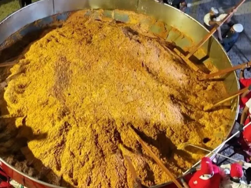 Χιλιάδες άνθρωποι συγκεντρώθηκαν για να παρακολουθήσουν την προσπάθεια και στη συνέχεια γεύτηκαν το πιάτο, που μοιράστηκε σε μερίδες στο πλήθος και στους περαστικούς.