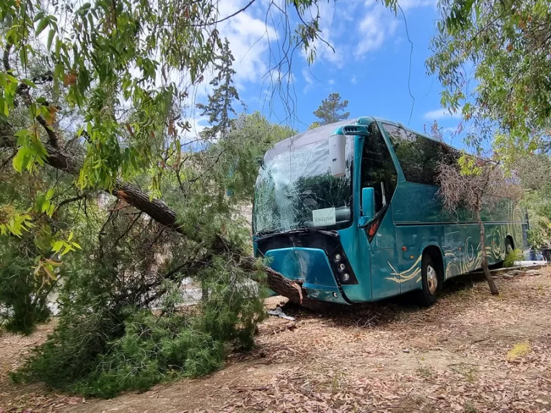 Το περιστατικό συνέβη σήμερα Πέμπτη (5/4) στη 13:00 έξω από τον ιερό ναό Αγίου Νεκτάριου όταν την ώρα που τουριστικό λεωφορείο κατέβαζε μαθητές του 5ου Γυμνασίου του Χαλανδρίου, «λύθηκε» το χειρόφρενο από άλλο λεωφορείο του ΚΤΕΛ το οποίο τελικά έπεσε πάνω του.