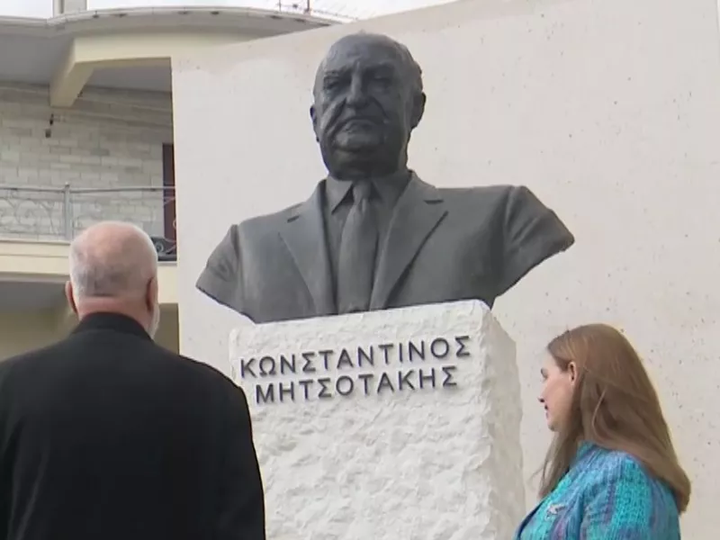 Την προτομή του Κωσταντίνου Μητσοτάκη φιλοτέχνησε ο Αλβανός γλύπτης Αρντιάν Ντούλε, που για αρκετά χρόνια ήταν μετανάστης στην Ελλάδα.