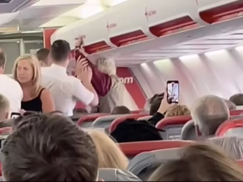 Το πλήρωμα του αεροπλάνου βλέποντας τον προσπάθησε να τον αποτρέψει ευγενικά εξηγώντας τους κανόνες ασφαλείας, αλλά ο νεαρός σαν «ταύρος εν υαλοπωλείο» όχι μόνο δεν υπάκουσε, προσπάθησε από τον θυμό του να σπάσει το κάθισμα στο οποίο καθόταν.