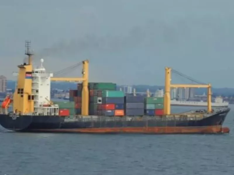 Πρόκειται για το πλοίο MED CERKEZKOY που είχε αποπλεύσει από Πειραιά για λιμένα Λαττάκεια Συρίας έμφορτο με εμπορευματοκιβώτια.