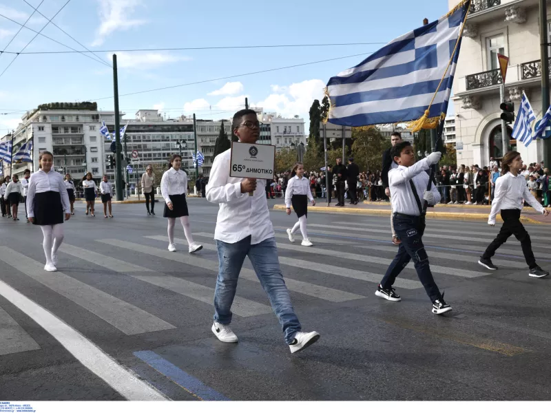 Πλήθος κόσμου βρέθηκε στο Σύνταγμα για να παρακολουθήσει τη μαθητική παρέλαση, υπό τους ήχους της Φιλαρμονικής Μπάντας του Δήμου Αθηναίων.
