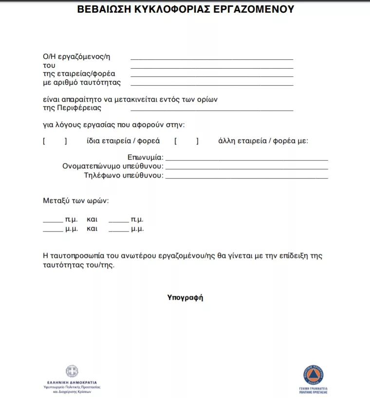 Για τις ανάγκες των περιορισμένων μετακινήσεων όπως ανακοινώθηκε δημιουργούνται δυο τύποι εγγράφων.