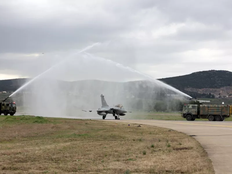 Στην Τανάγρα προσγειώθηκαν πριν από λίγα λεπτά τα πρώτα έξι μαχητικά αεροσκάφη Rafale της Πολεμικής Αεροπορίας, στο πλαίσιο της αμυντικής συμφωνίας που υπέγραψαν Ελλάδα και Γαλλία.