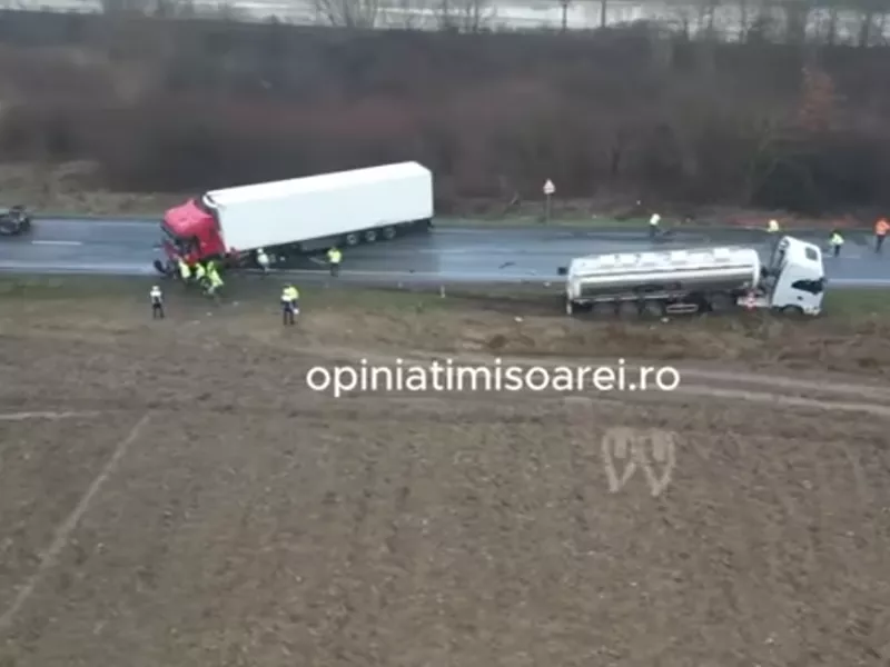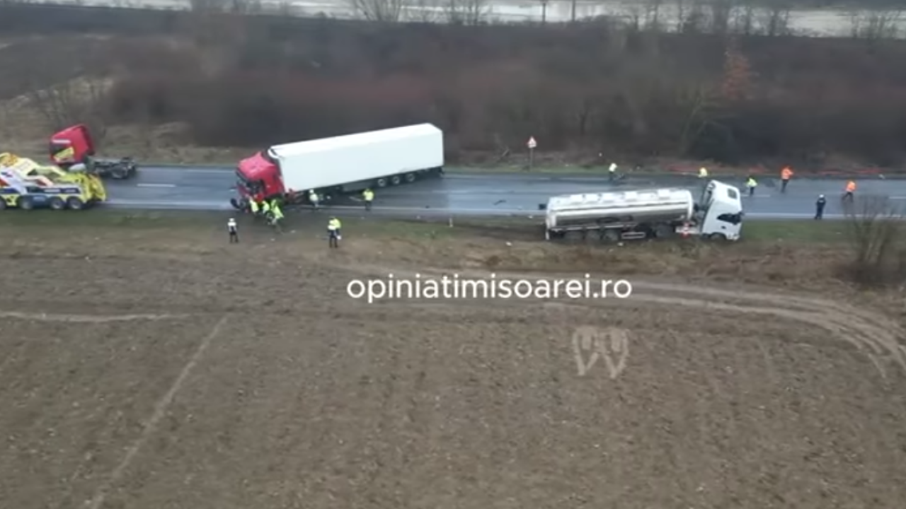 Κάμερα drone πέταξε πάνω από τον μοιραίο αυτοκινητόδρομο E70, στην κομητεία Τίμις της Ρουμανίας όπου χθες έχασαν τη ζωή τους επτά νεαροί οπαδοί του ΠΑΟΚ στο σοκαριστικό τροχαίο που βύθισε στο πένθος τη χώρα.