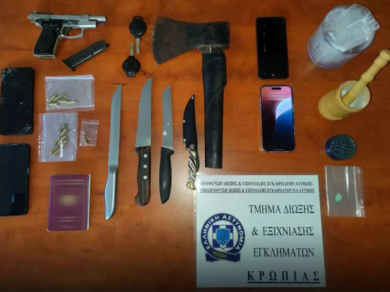 Από το Τμήμα Δίωξης και Εξιχνίασης Εγκλημάτων Κρωπίας σε συνεργασία με την Υποδιεύθυνση Δίωξης και Εξιχνίασης Εγκλημάτων Νοτιοανατολικής Αττικής, εξιχνιάσθηκε περιστατικό πυροβολισμών έξω από οικία που έλαβε χώρα βραδινές ώρες της 30-9-2025 στο Κίτσι Κορωπίου.