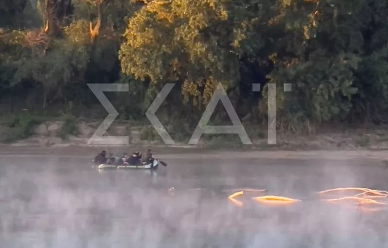 Όπως φαίνεται κι από φωτογραφία που εξασφάλισε ο ΣΚΑΪ, φουσκωτό στο οποίο επιβαίνουν μετανάστες προσπαθεί να διασχίσει τον ποταμό του Έβρου.