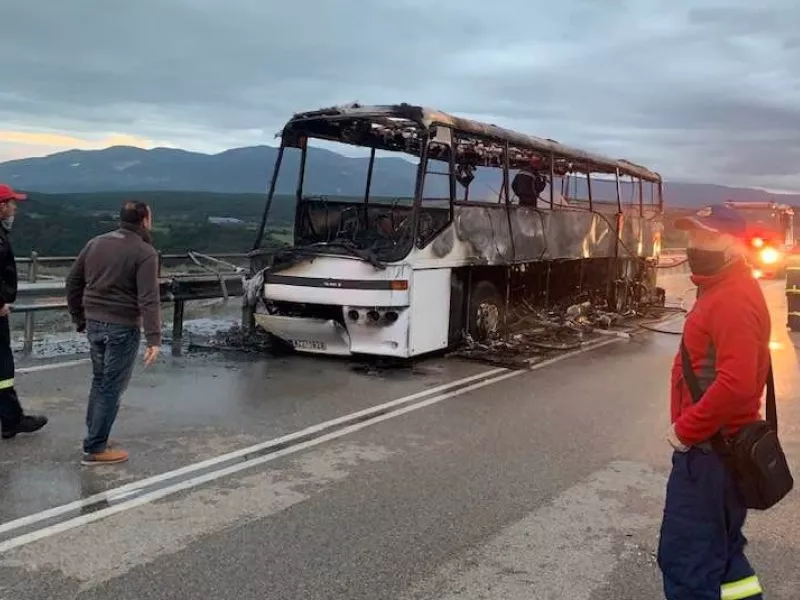 Στο σημείο επιχείρησαν 10 Πυροσβέστες με 4 οχήματα της Πυροσβεστικής Υπηρέσιας. Το λεωφορείο καταστράφηκε ολοσχερώς.