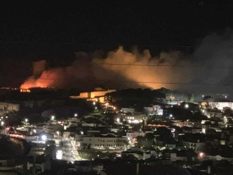 Η εστία της φωτιάς εντοπίζεται μέσα στον περιφραγμένο χώρο του Κάστρου Μυτιλήνης, γεγονός που έχει κινητοποιήσει άμεσα τις Αρχές.