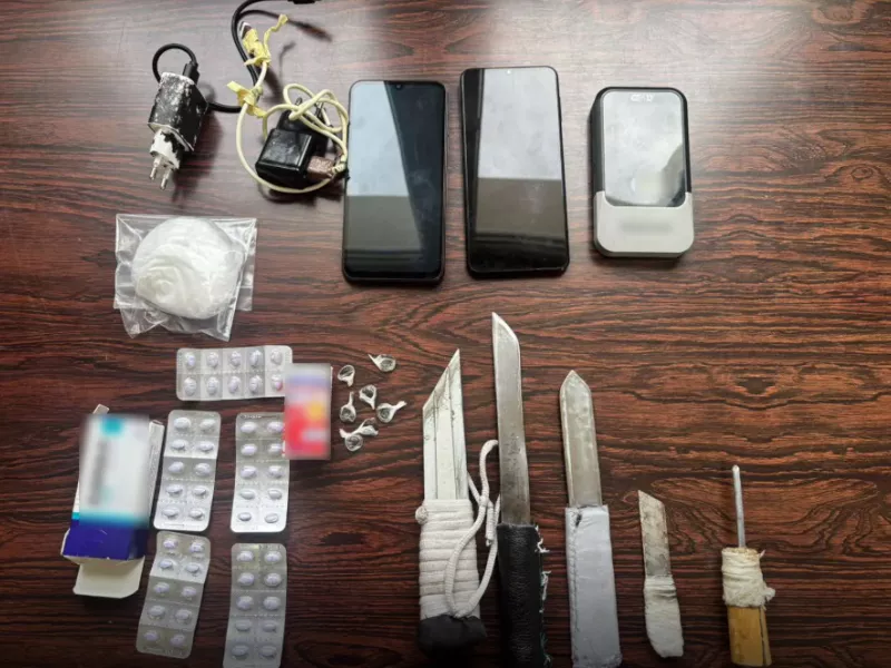 Οι αστυνομικοί εντόπισαν αυτοσχέδια μαχαίρια, ναρκωτικά και κινητά τηλέφωνα, με τα οποία οι κρατούμενοι επικοινωνούσαν με τον... έξω κόσμο.