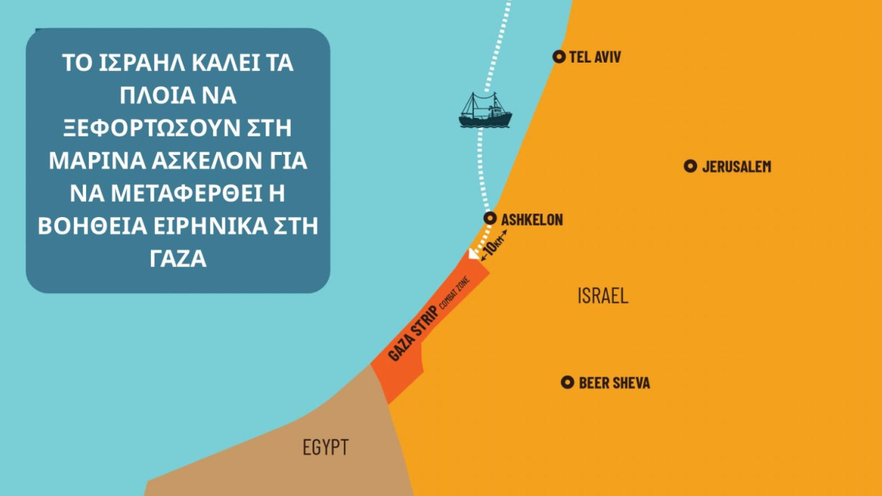 «Το Ισραήλ δεν θα επιτρέψει σε πλοία να εισέλθουν σε ενεργή ζώνη μάχης και δεν θα επιτρέψει την παραβίαση ενός νόμιμου ναυτικού αποκλεισμού» ανακοίνωσε το ισραηλινό υπουργείο Εξωτερικών, κατηγορώντας τη Χαμάς ότι οργάνωσε την επιχείρηση για την προώθηση των στόχων της.