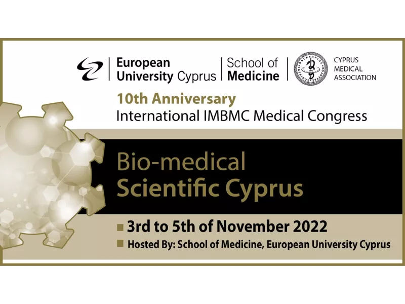 Η Ιατρική Σχολή του Ευρωπαϊκού Πανεπιστημίου Κύπρου με συν-διοργανωτή τον Παγκύπριο Ιατρικό Σύλλογο διοργανώνει το 10ο Διεθνές Βίο-Ιατρικό Συνέδριο, «Ιατρική/Βίο-Ιατρική Επιστημονική Κύπρος», με γενικό τίτλο: «Ιατρική Σχολή: Μέσον Επιστήμης και Πολιτισμού». Το τριήμερο Συνέδριο τελεί υπό την αιγίδα του Υπουργείου Υγείας, της Κυπριακής Καρδιολογικής Εταιρείας, της Βιολογικής Εταιρείας Κύπρου, του Παγκύπριου Συνδέσμου Καρκινοπαθών και Φίλων, και άλλων συνδέσμων, εταιρειών και συλλόγων. Η επίσημη τελετή έναρξης θα πραγματοποιηθεί την Πέμπτη 3 Νοέμβριου στις 17:00, ενώ το τριήμερο συνέδριο θα ολοκληρωθεί το Σάββατο με την αναγόρευση των βραβευμένων με Νόμπελ ιατρών Sir Martin Evans και Sir Gregory Winter σε Επίτιμους Διδάκτορες της Ιατρικής Σχολής του Ευρωπαϊκού Πανεπιστημίου Κύπρου.