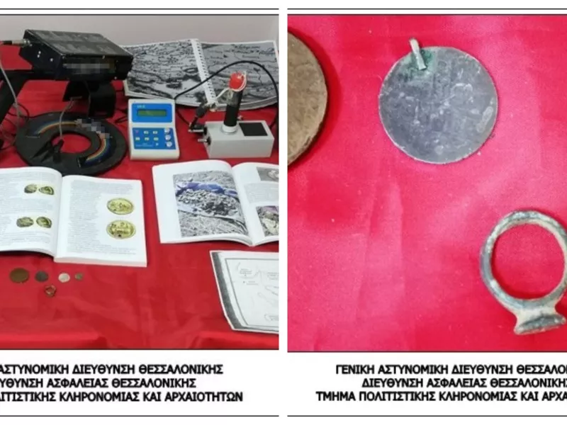 Τέλος, κατασχέθηκαν πλήθος εγγράφων και χαρτών, όπου απεικονίζονται τοποθεσίες και σημεία αρχαιολογικού ενδιαφέροντος, δύο ανιχνευτές μετάλλων και τέσσερα βιβλία που αφορούν αρχαία νομίσματα.