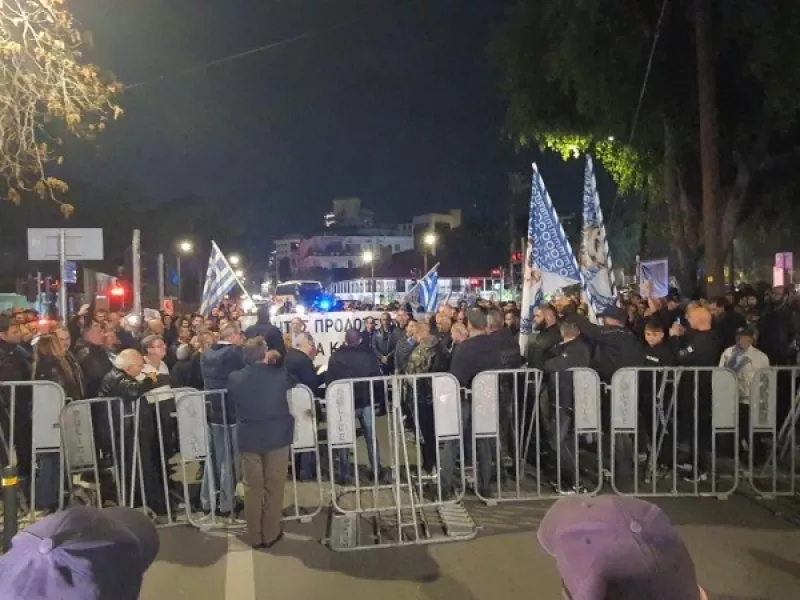 Περίπου 300 διαμαρτυρόμενοι έφτασαν στο σημείο με το σύνθημα "Ζει και μας καθοδηγεί, Γεώργιος Γρίβας Διγενής". Μεταξύ άλλων ακούστηκαν συνθήματα όπως «ΕΟΚΑ ξανά στης Κύπρου τα βουνά», «Αλήτες προδότες πολιτικοί, η Κύπρος είναι Ελληνική», «Αναρχικοί και μπολσεβίκοι αυτή η γη δεν σας ανήκει», ενώ κάποιοι διαδηλωτές φώναξαν υβριστικά συνθήματα κατά βουλευτών.