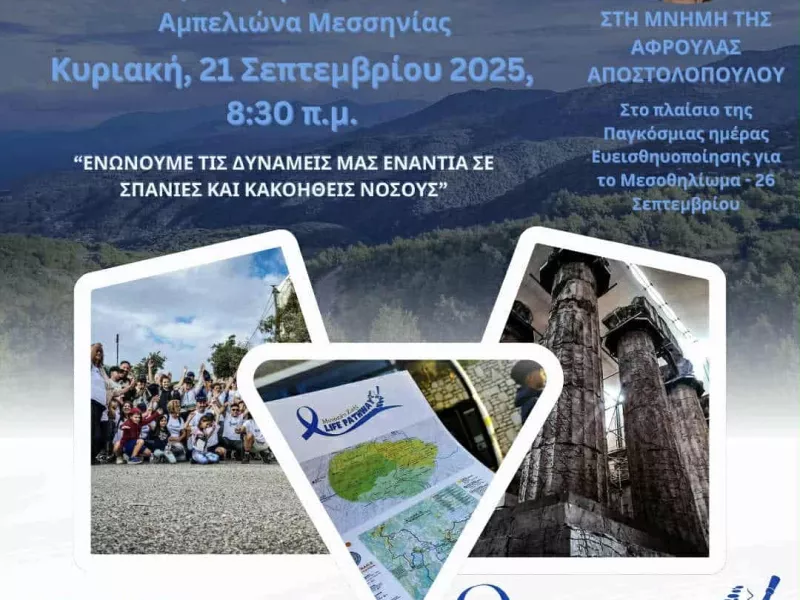 Ο φορέας Life Pathway - Μονοπάτι Ζωής διοργανώνει την 3η διάσχιση του ιστορικού μονοπατιού που συνδέει τον Ναό του Επικούριου Απόλλωνα στις Βάσσες Φιγαλείας με τον Αμπελιώνα Μεσσηνίας, την Κυριακή 21 Σεπτεμβρίου 2025, ώρα 8:00 π.μ.